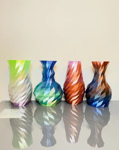 Jarrones impresos en 3D con materiales resistentes, ideales para flores o como elemento decorativo que resalta en cualquier ambiente.